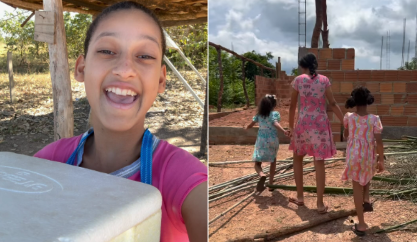 Amandinha de 13 anos vende "cremosinho" para ajudar sua família que está morando em barraco sem banheiro