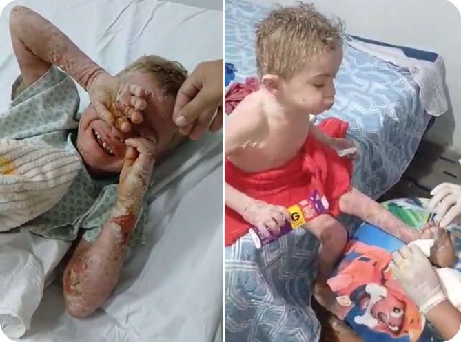 Por causa da doença, a pele do Davi resseca, machuca e forma bolhas que estouram, deixando tudo em carne viva. Nenhuma criança deveria passar por isso. É muito sofrimento!